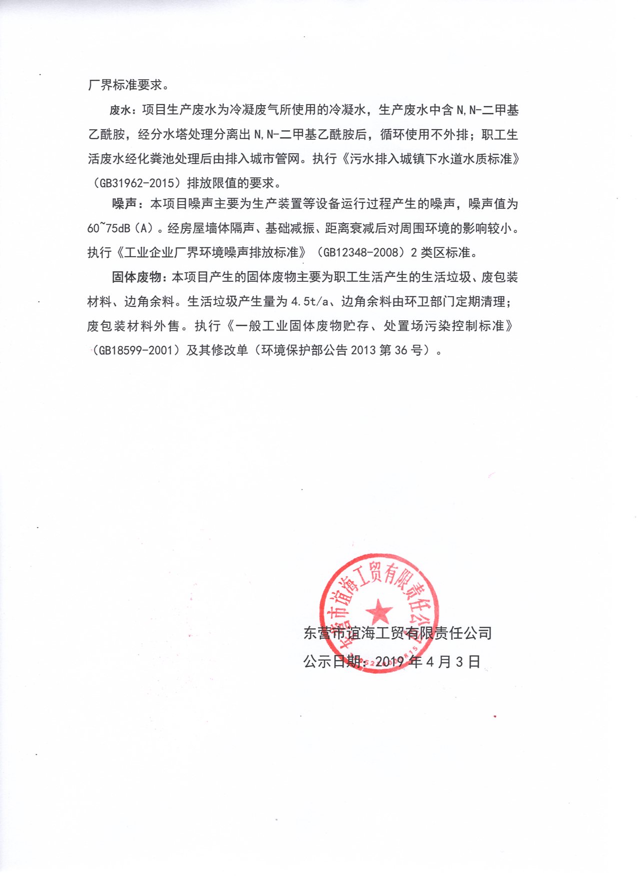 起止日期公開: 東營市誼海工貿(mào)有限責(zé)任公司于2016年8月9日取得《東營市誼海工貿(mào)有限責(zé)任公司1000t/a高新電子絕緣材料項(xiàng)目環(huán)境影響報(bào)告表》的批復(fù)(墾環(huán)建審 [2016]036號)。 東營市誼