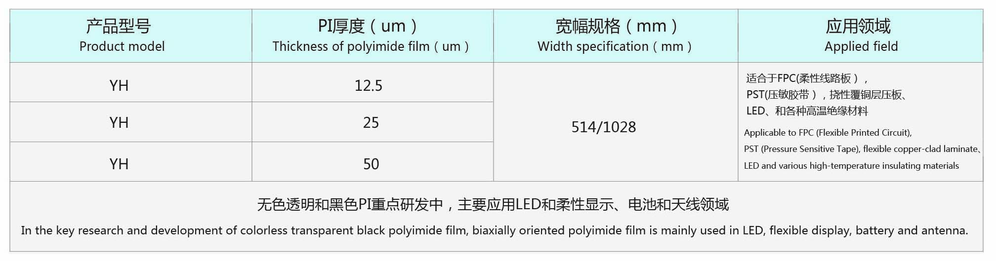 我公司主要產(chǎn)品為雙向拉伸聚酰亞胺薄膜,除具有傳統(tǒng)PI所具有的熱性能和絕緣性能外還具有優(yōu)良的尺寸穩(wěn)定性、強(qiáng)度高等特點(diǎn)。